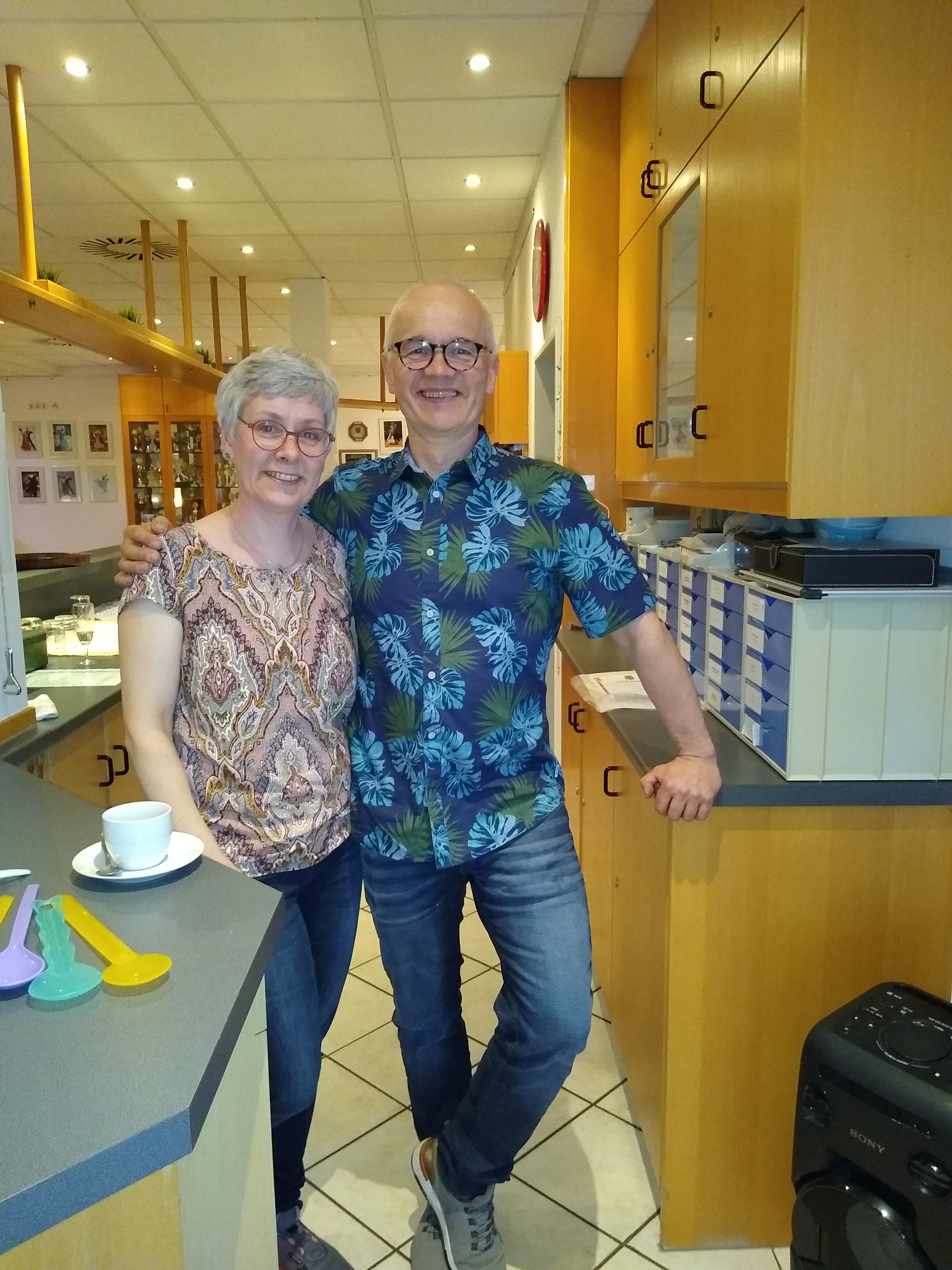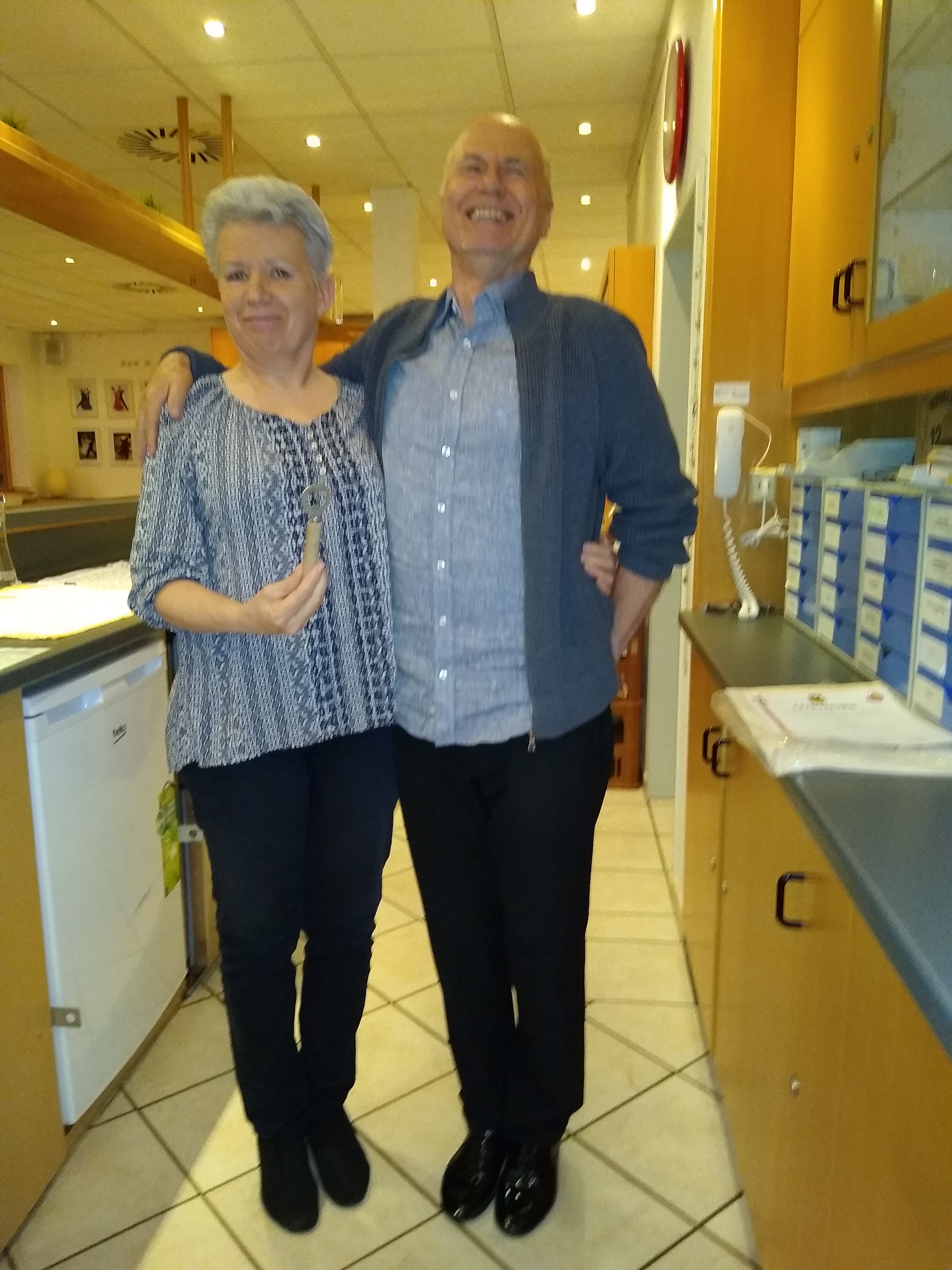Ab 00.00 Uhr wurden Brigitte und Gerd an der Theke durch unserer neue Eventmanagerin Sarah und von Ines und Erhard, die die leeren Flaschen von den Tischen entfernen, Gläser spülten usw.