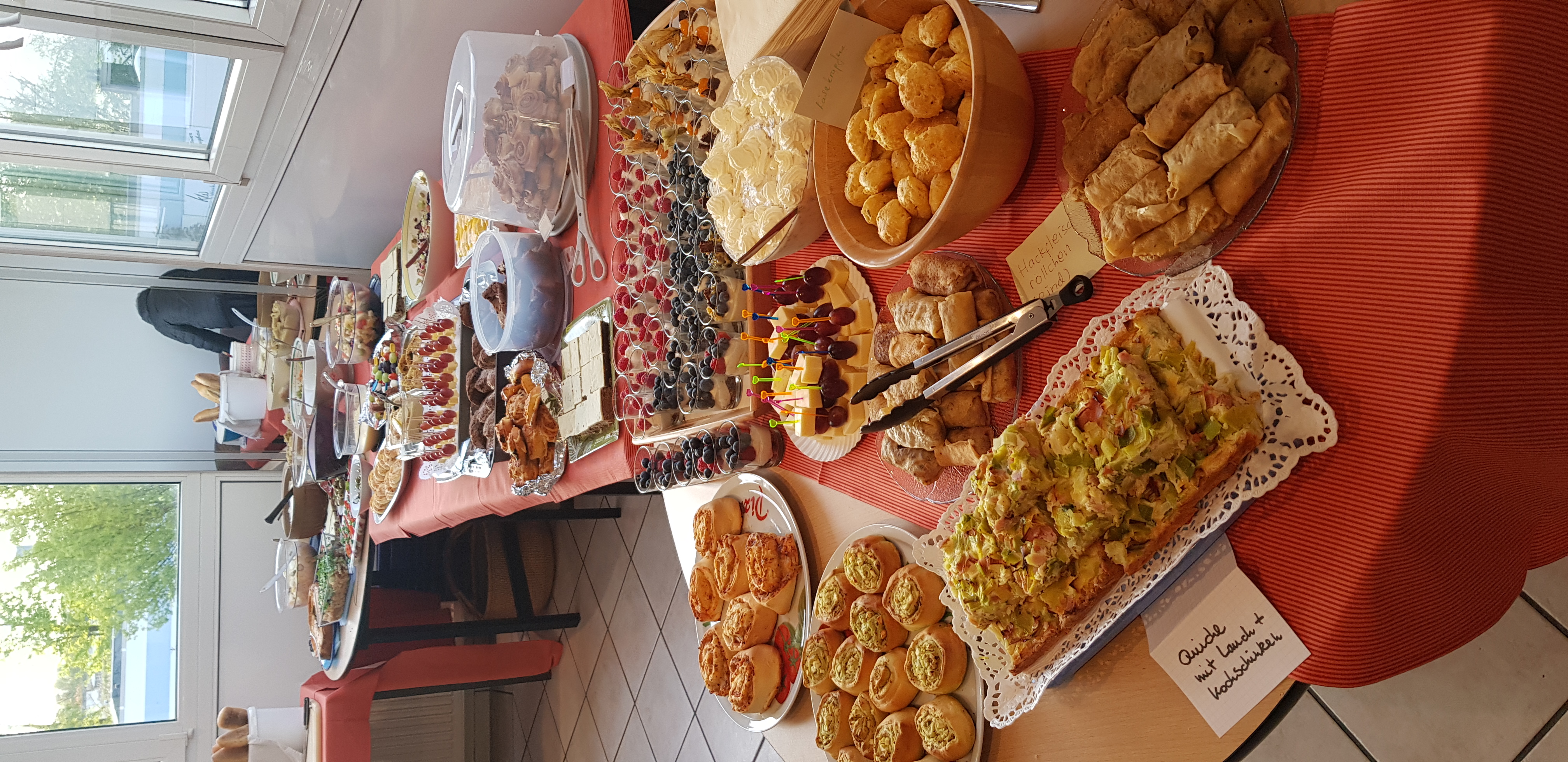 Es gab eine gute Auswahl verschiedener Salate, Käsespießen, Kuchen und Süßspeisen. Dieses Angebot wurde rege genutzt, und es gab teilweise Warteschlangen: ein Zeichen dafür, dass jeder für sich etwas finden konnte.