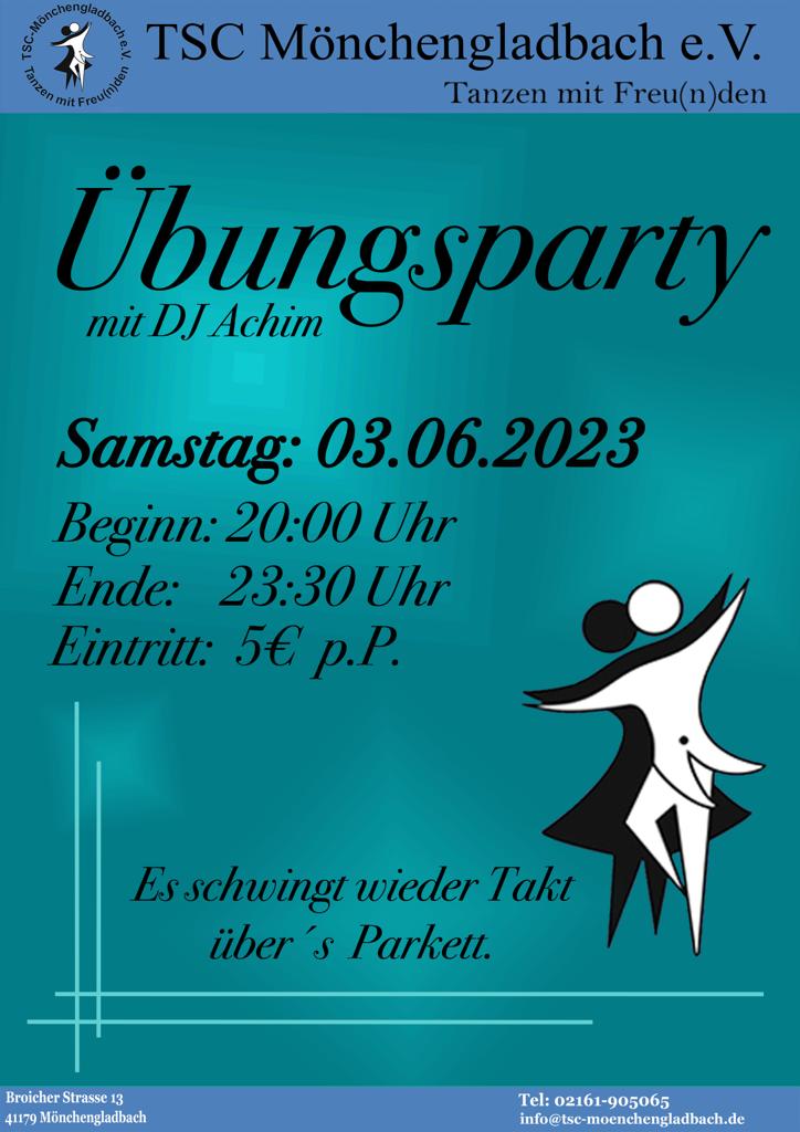 Nach dem Tanz in den Mai kommt die nächste Übungsparty und was gibt es schöneres, als zur stimmungsvollen Musik das Tanzbein zu schwingen. Vereinsmitglieder, Gäste und Freunde des TSC sind zu unserer Übungsparty am 03.06.2023 von 20:00 bis 23:30 Uhr im Großen Saal herzlich willkommen.