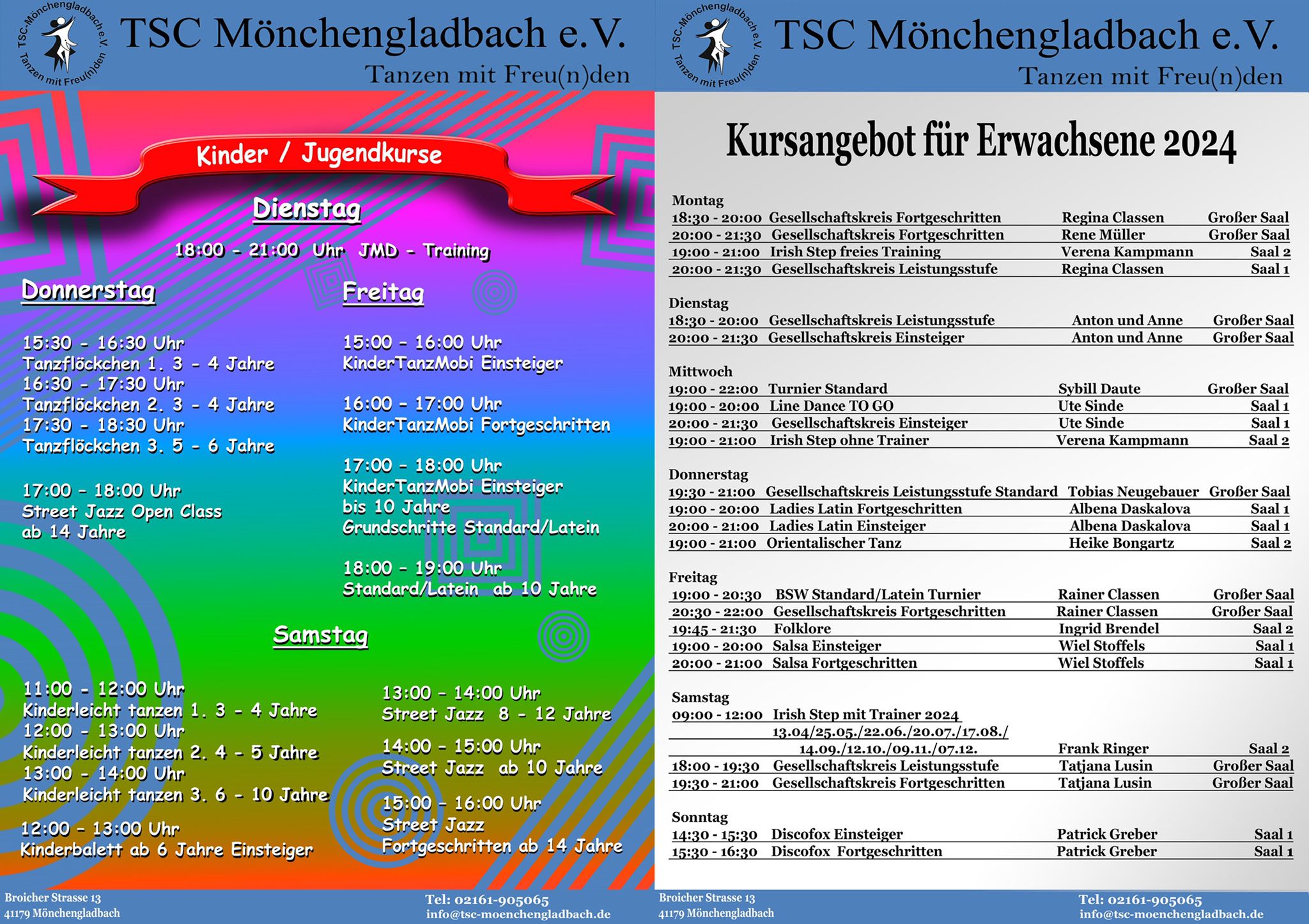 hier unsere aktualisierte Gesamtübersicht unserer Tanzangebote für Kinder-, Jugendliche und Erwachsene.