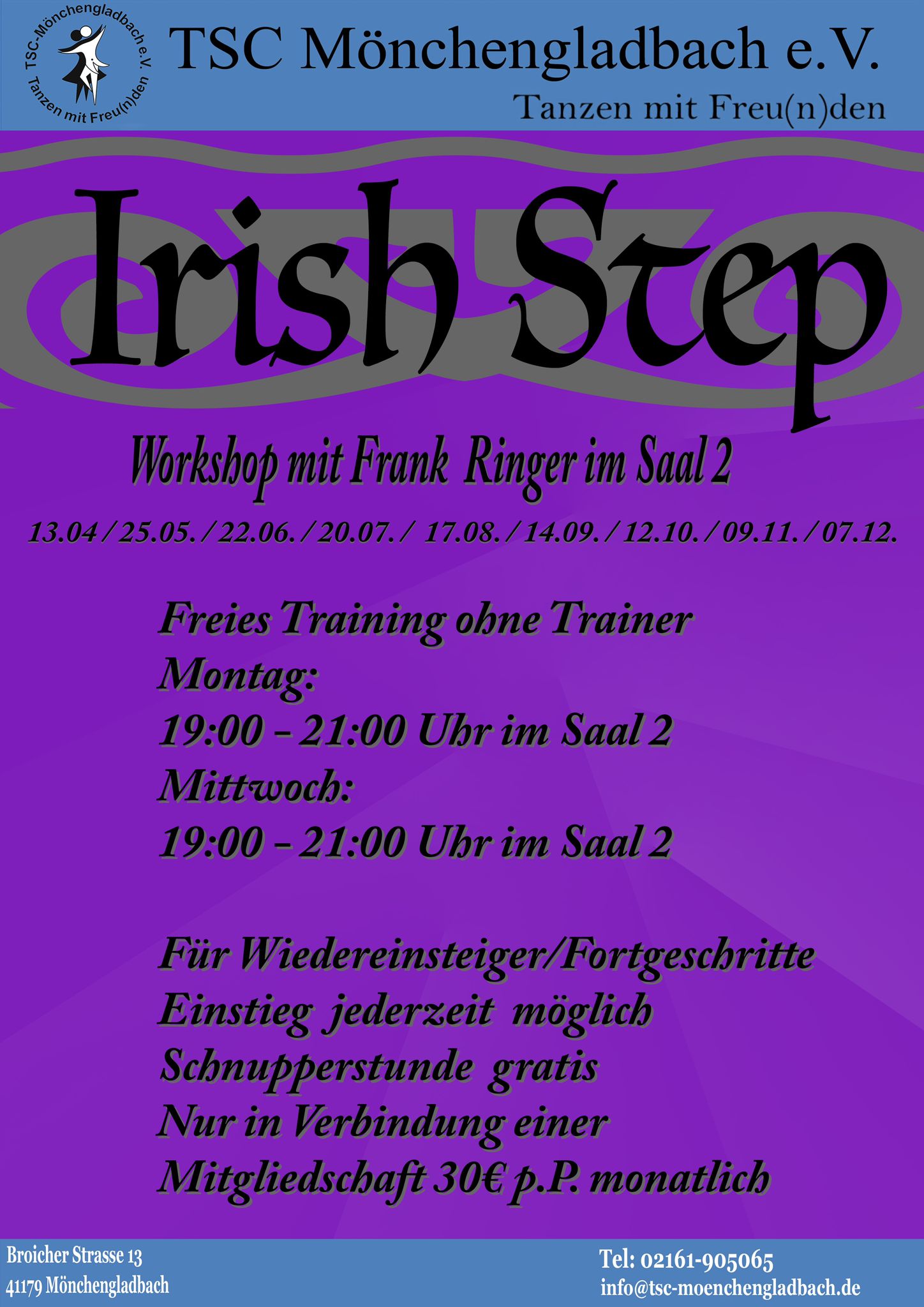 Der Einstieg ist für Wiedereinsteiger und Fortgeschrittene jederzeit möglich.