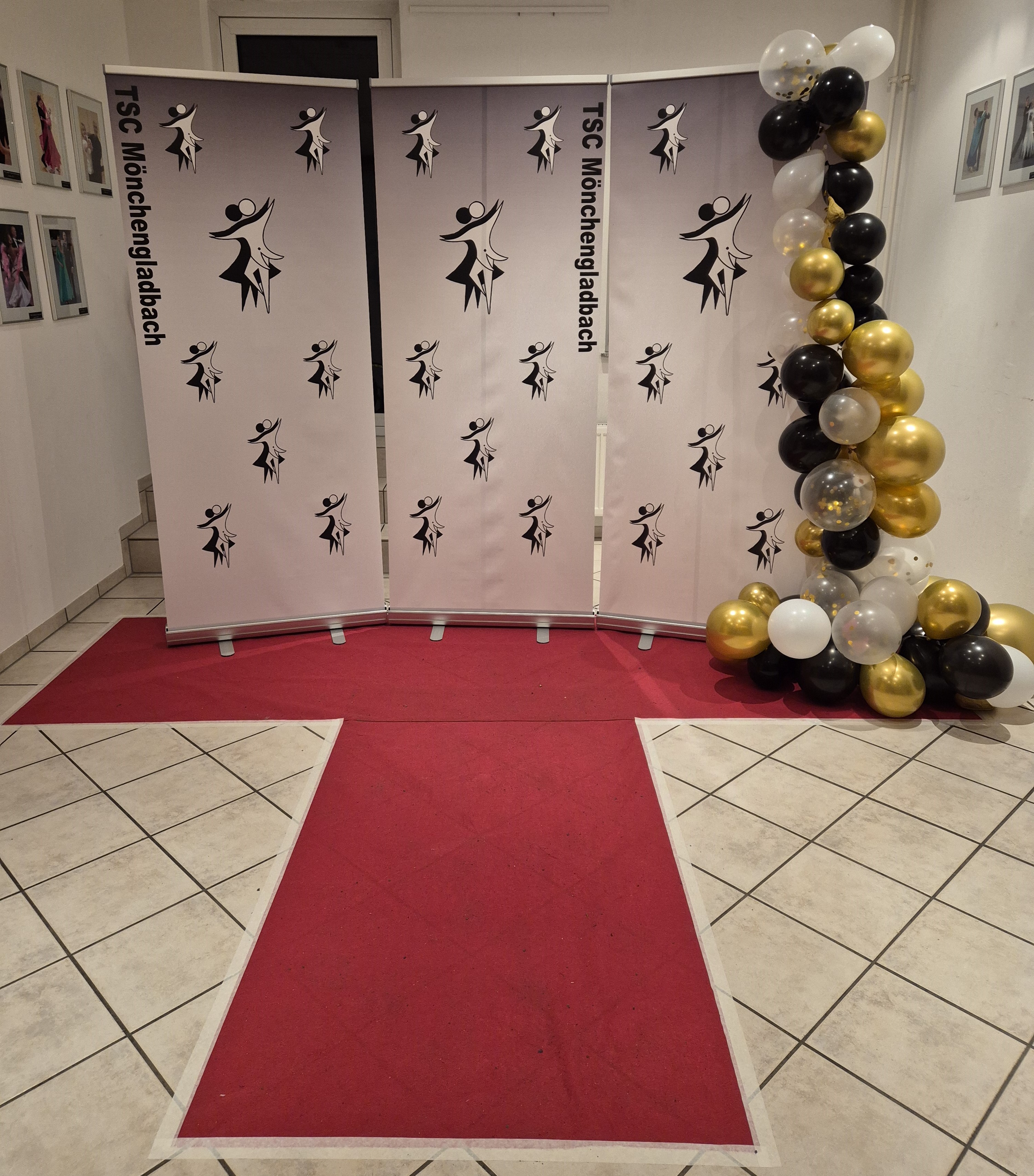 Mit unserem Label in verschiedenen Größen aufgedruckt und mit goldenen schwarzweißen Luftballons versehene neue Fotowand inspirierte viele Besucher zum Fotografieren.