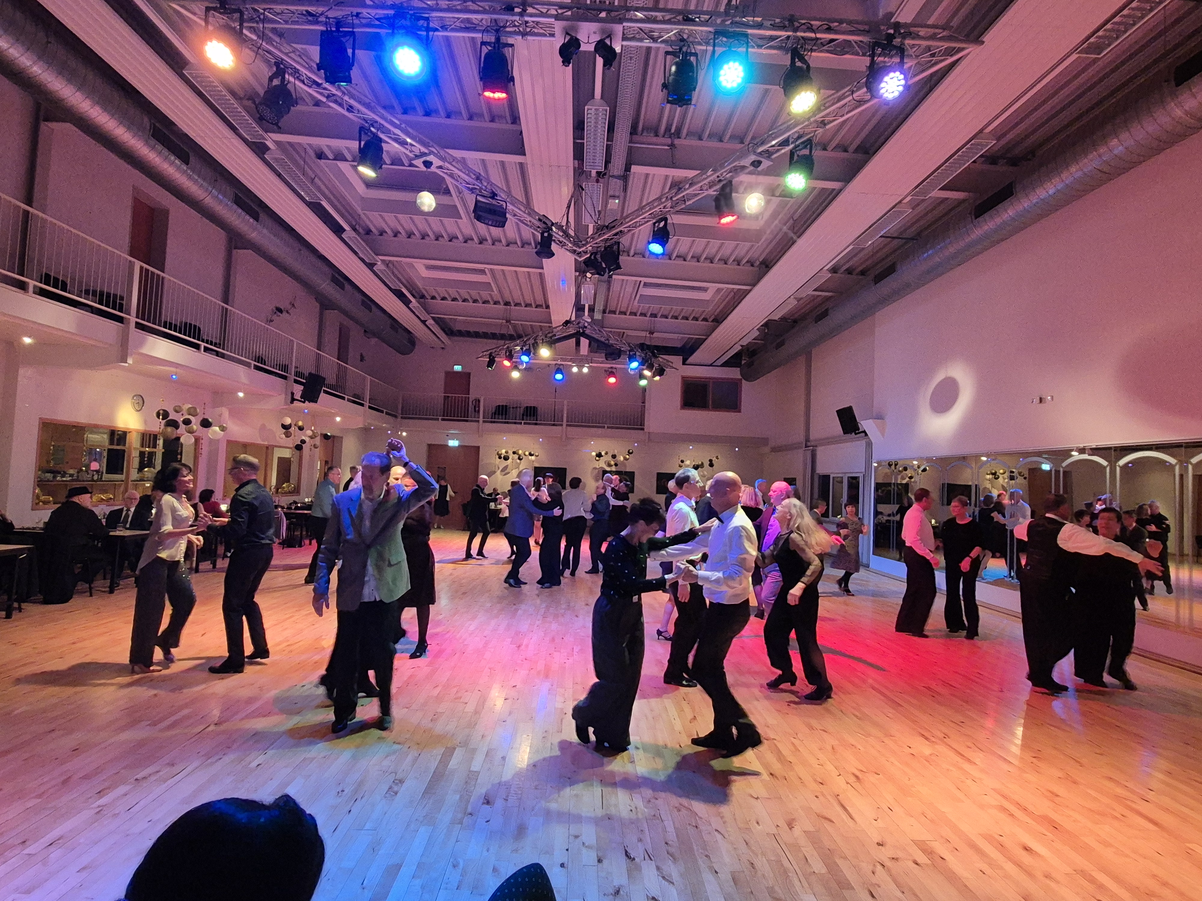 Über einhundert Tanzfreunde von nah und fern füllten den Großen Saal mit guter mitgebrachter Laune, chicken Outfit, großer Bewegungsfreudigkeit und heißer Liebe zur Musik aller Art. Der große Saal strahlte Ball-Atmosphäre aus, vor allem durch eine in gold–schwarz-weiß und in Bronze gehaltene Deko mit herabhängenden, goldenen Ketten und verschieden großen Lampions dazu kam flackerndes Flashlight. Das blank gewienerte Tanz-Parkett und ein leckeres Büffet mit Spezialitäten von Fleisch, von Vegetarischem und süßem Nachtisch rundete das Wohlgefühl der Gäste noch ab.